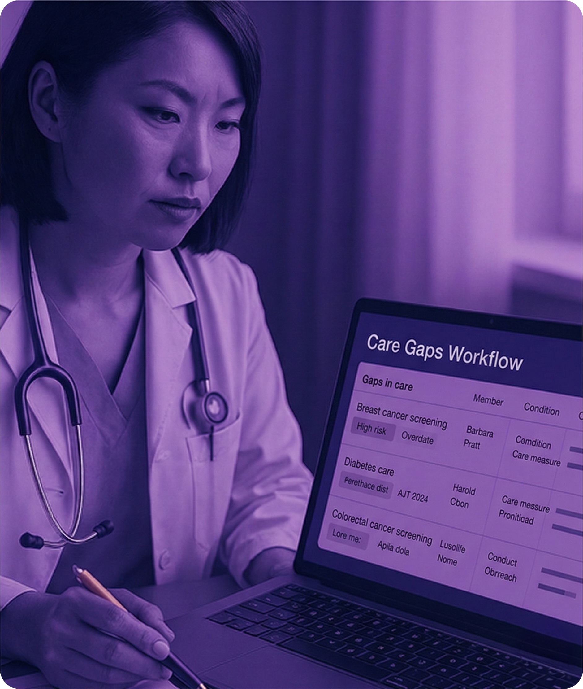 Built to identify gaps with HEDIS/STAR precision, this workflow links EMRs, claims, and clinical notes into one clear view—so enterprises intervene sooner and meet performance goals.